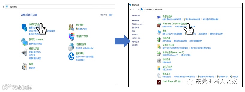 先打开控制面板,1单击【系统和安全】—2单击【防火墙】—3单击【启用或关闭防火墙】—4选中【关闭防火墙】—5单击【确定】,如下图所示。