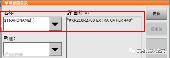 (4)新值里输入:$TRAFONAME[]或机器人铭牌上的机器人型号参数。