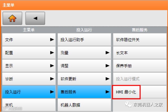(1)登录专家权限,密码为:kuka,主菜单--投入运行--售后服务--HMI最小化,进入电脑系统中。