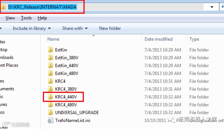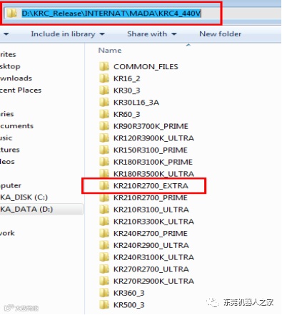 1)按照路径D:\KRC_Release\INTERNAT\MADA\KRC4_440V\KR210R2700_EXTRA\FLOOR\R1,