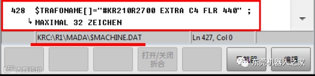 1. 机器人型号参数位置在KRC\R1\Mada\$machine.dat文件中,变量为:$TRAFONAME[]。