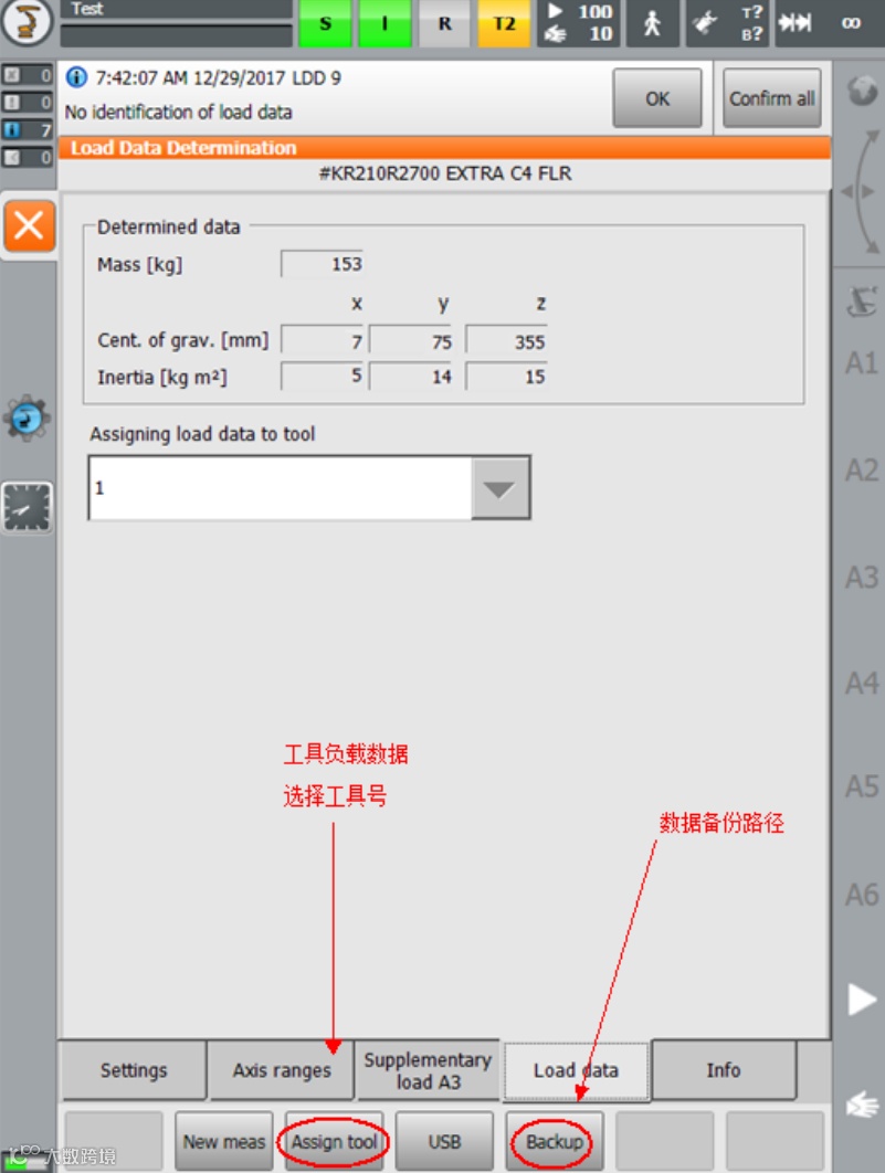 导读:机器人负载 负载说明: 所有负载数据(工具载荷及附加负载)都必须使用 KUKA.LoadDataDetermi