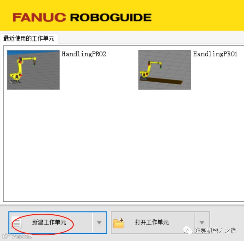1.打开FANUC ROBOGUIDE仿真软件——新建工作单元。