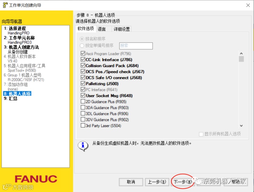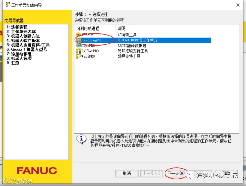 2.选择机器人对应的版本用途,这里以HandlingPRO ROBOGUIDE标准工作单元,然后点击下一步。