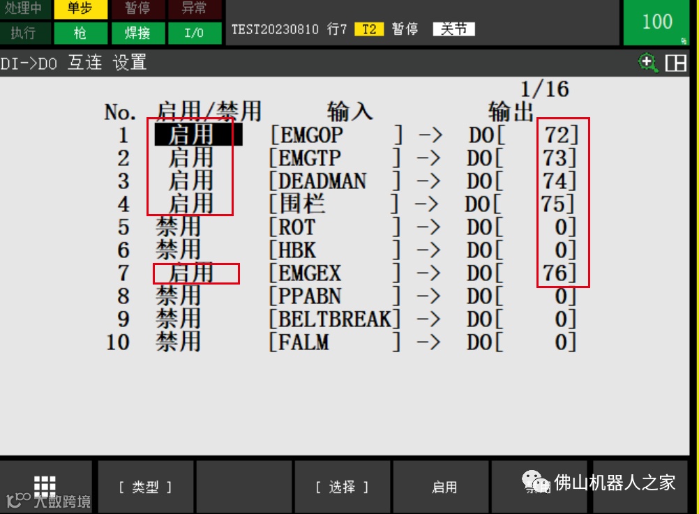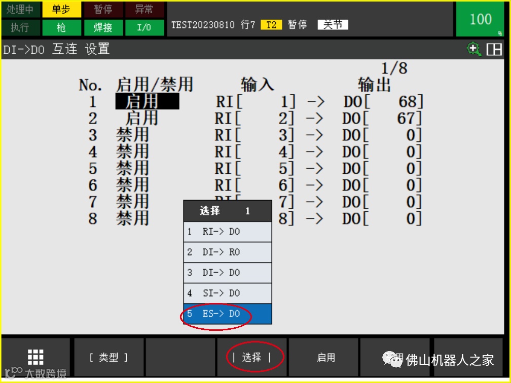 3.机器人急停状态ES关联对应的DO并启用即OK。