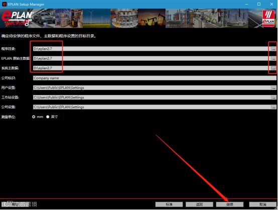 5、分别点击程序目录、EPLAN原始、系统主数据三项后面的…更改安装路径,建议安装在除C盘以外的其它磁盘。