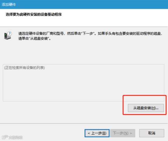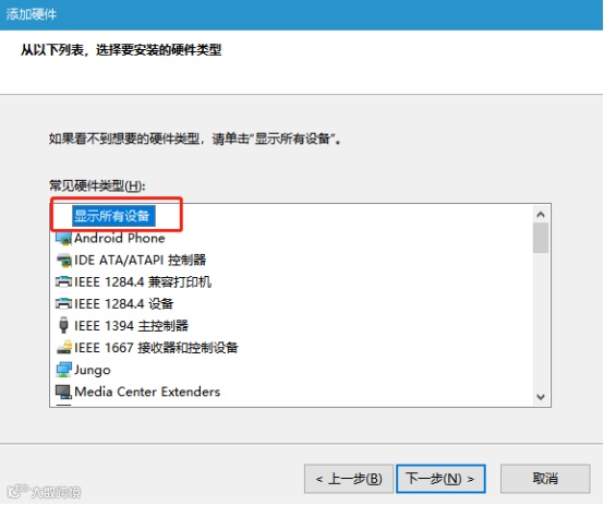 21、常见的硬件类型,双击“显示所有设备”后,进入下一页,点击从磁盘安装