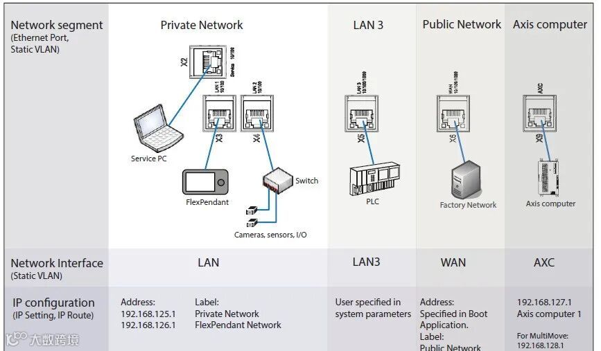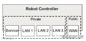 由于Service,LAN1,LAN2,LAN3均为Private网络,相当于一个交换机的不同网口,此时当然也可以将PC的网线插入LAN3或者LAN2,通过Robotstudio连接机器人(连接的机器人IP为192.168.125.1)。如果配置PROFINET或者Ethernet/IP关联到PRIVATE label,就可以用LAN2进LAN3出的方式将机器人做为环网上的一个节点。