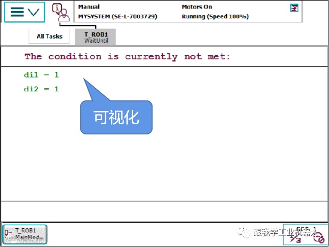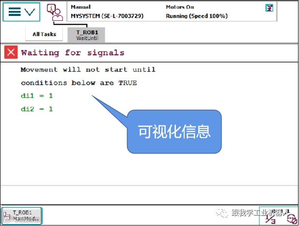 如果未在60秒以内满足两个输入条件,则将在FlexPendant示教器的显示器上写入一条错误消息。