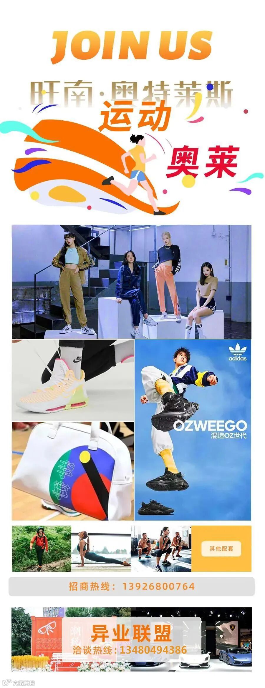 B1层为大润发生活超市;B2、B3层为大型智能停车场;一楼为运动奥莱馆,现已引进阿迪达斯、耐克、斯凯奇、李宁、卡帝乐鳄鱼、花花公子等多个一线运动潮牌品牌 outlets 店及部分餐饮。二楼配套以海底捞为代表的美食餐饮;三楼配套金逸影城、大赢家游乐城等;是以汇聚运动奥莱馆、美食、娱乐、体验、儿童教育、大型生活商超于一体的城市奥莱、生活购物综合体