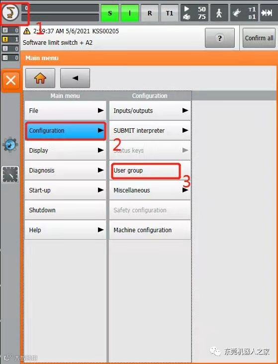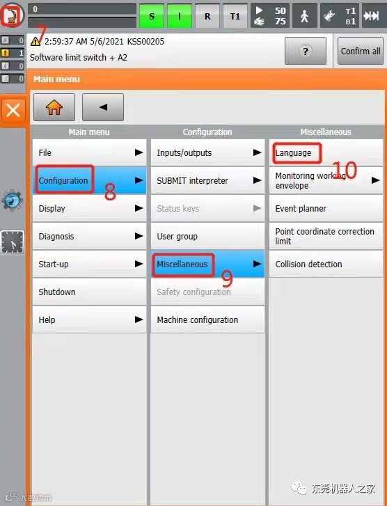 东莞机器人之家KUKA机器人示教器中英文语言切换步骤: