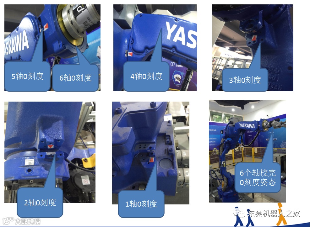 4.打开机器人控制柜门侧面上有机器人6个轴的机械原点