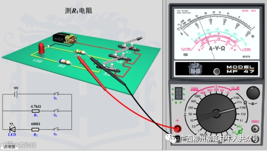 (3)测量时候,把万用表并联到被测对象,红色黑色表笔不分正负极;