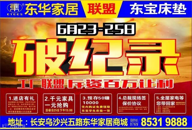 简介:东莞长安唯一一家工厂直销家具展厅,长安最大的家具城,品质保证。办公,红木,酒店,家用韩欧式,实木客厅等专业生产订制,教您选择家具,购家具,保养家具,爱家爱家居。 ![]() |
