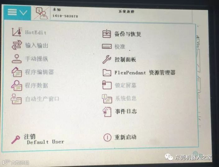 (1)ABB机器人如果开机就报系统故障如下图: