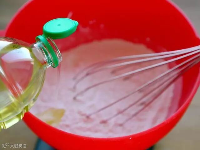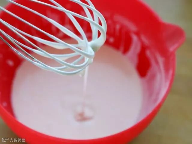 5.倒入牛奶拌到无颗粒,拿起刮刀,糊糊很顺畅地滴落下来,纹路马上消失。