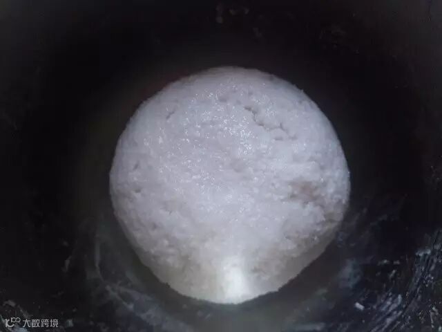2、西米用料理机打成粉,加热水和成团。