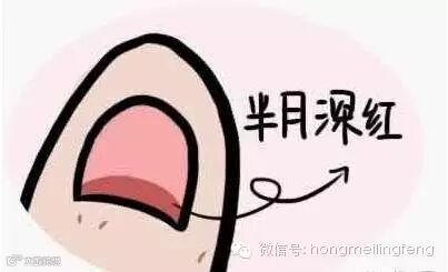指甲上的半月深红有心脏病的征兆,如果淡红色多是贫血导致的。此时要去医院确诊,在食谱中增加含铁的食物,如大豆、牛肉、菠菜、葡萄干等可预防贫血。