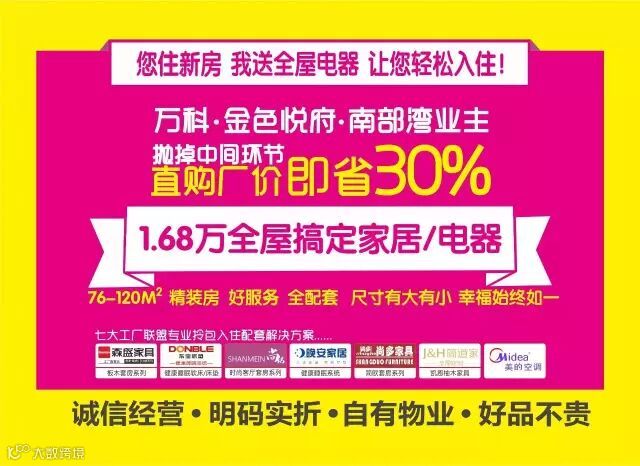 异业联盟:万科南部湾、金色悦府 美的电器、 窗帘、