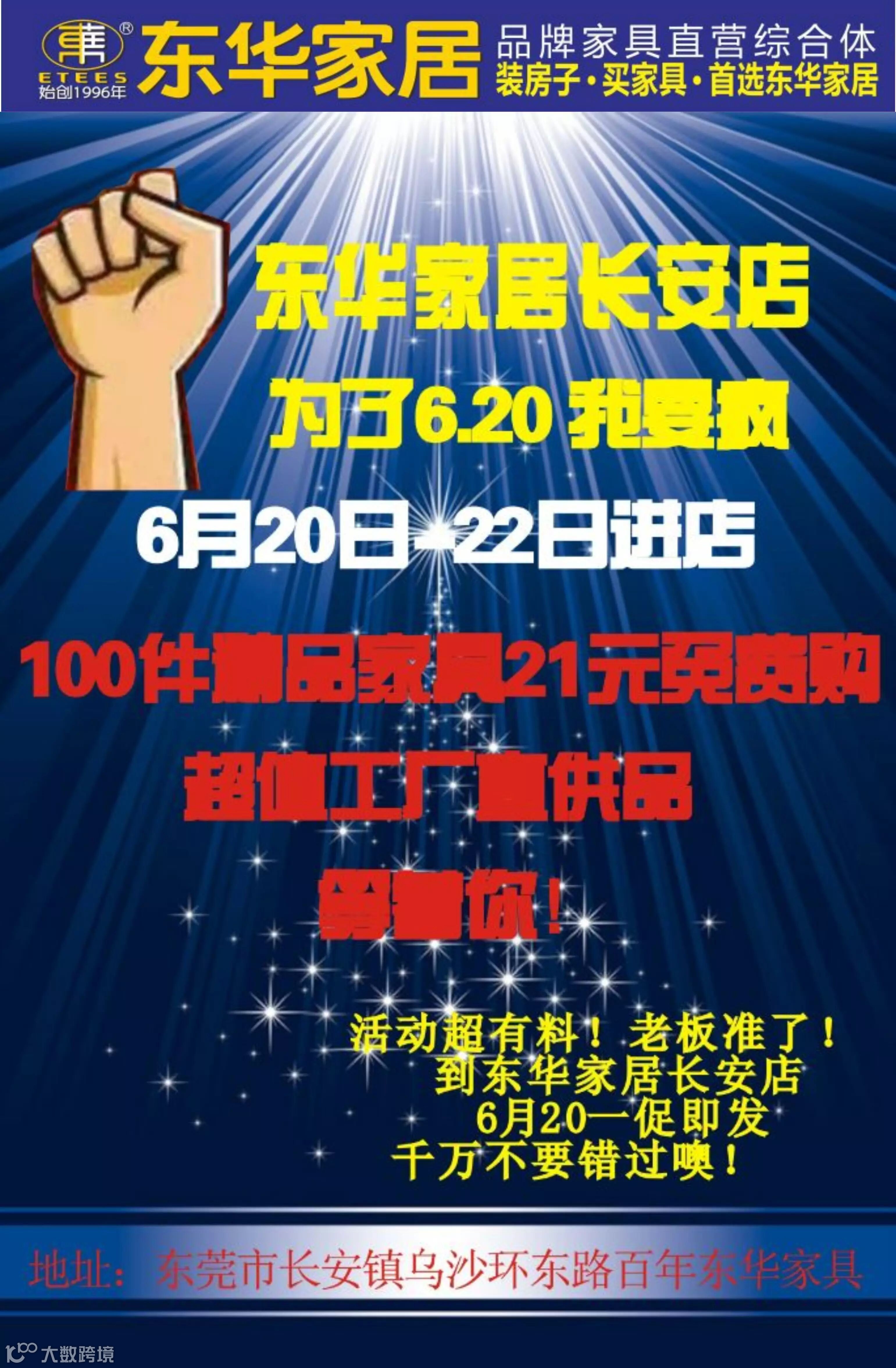 地址/东莞市长安乌沙环东路百年东华家居广场