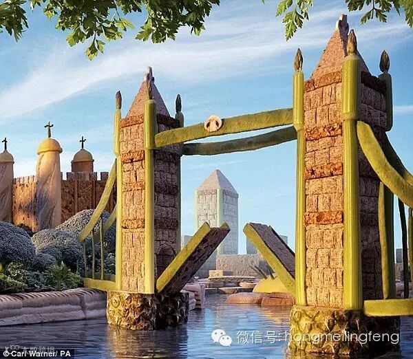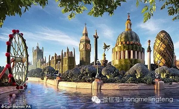 据英国《每日邮报》报道,一位摄影师用26种不同的水果和蔬菜雕塑了伦敦市全景图,效果惊人!