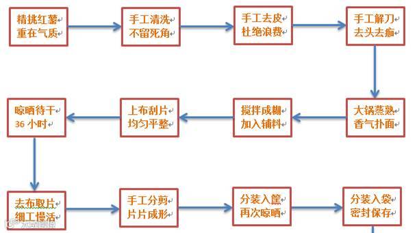 红薯片的制作看似简单,制作相当复杂。粗略的算一下,至少得经过十二道纯手工流程,每道流程都缺一不可,一旦圆满,其纯洁、健康即似铜墙铁壁,牢不可破。而每一流程都要求注入妈妈们精耕细作的匠心精神,终得美味。