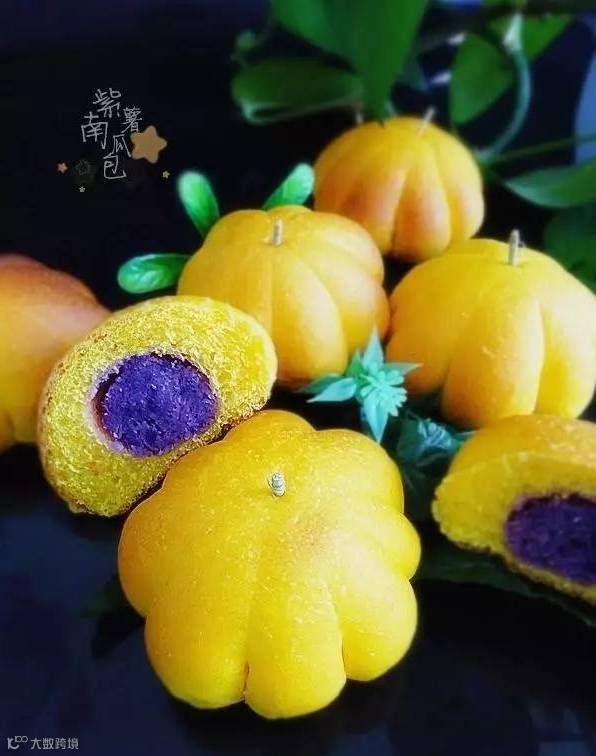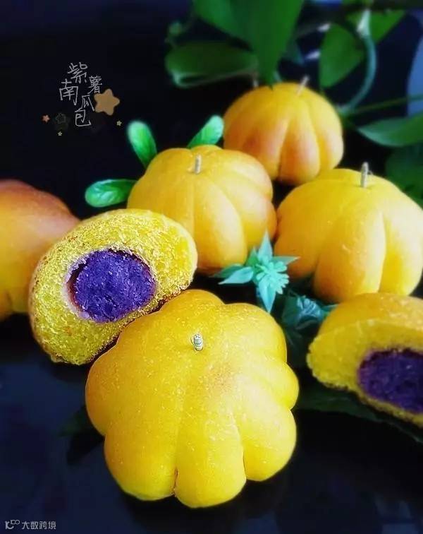 用南瓜和面,用紫薯、椰蓉,奶油做馅,用心造型,最好吃的一个浪漫面包就诞生了。