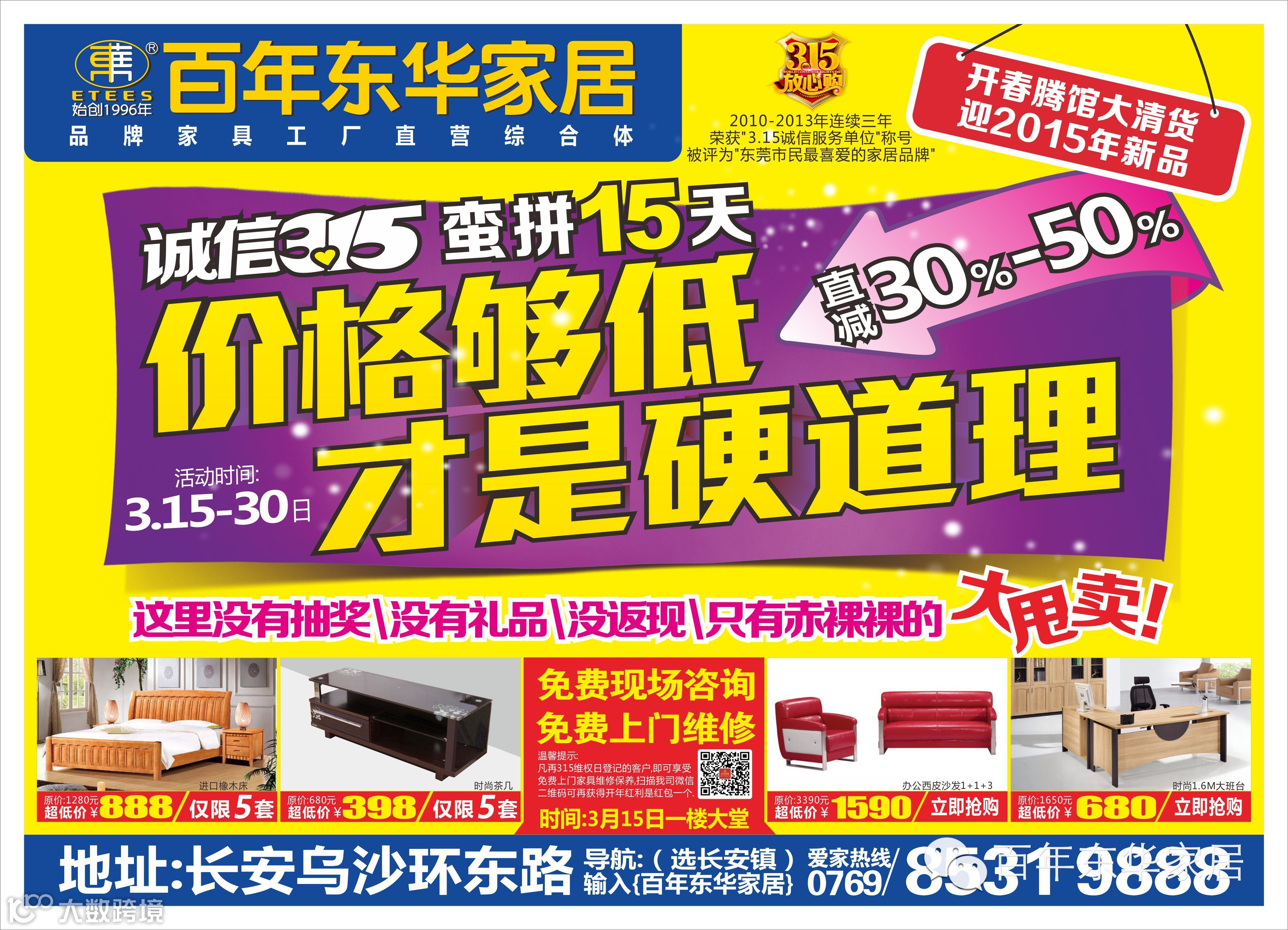 地址/东莞市长安乌沙环东路百年东华家居广场