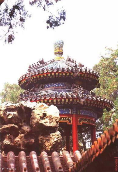 亭一般为开敞性结构,顶部可分为六角、八角、圆形等多种形状。亭通常是用作休息、乘凉或观景。故宫内的亭主要出现在花园中,如御花园中的御景亭,千秋亭,乾隆花园中的碧螺亭等。