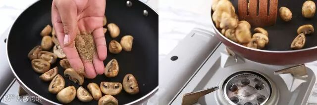 表面变色后撒少许盐和黑胡椒炒香