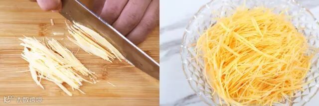 再切成细丝,同样能切多细就多细,这样吃起来才能嘎嘣脆