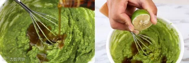 牛油果碾碎,加少许枫糖浆和青柠汁