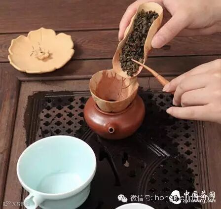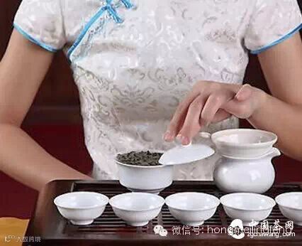 把茶叶放到器具里,也就是放茶过程到茶壶里,名字叫的好听,程序简单,表演可以适当加入花式,更具有茶韵。