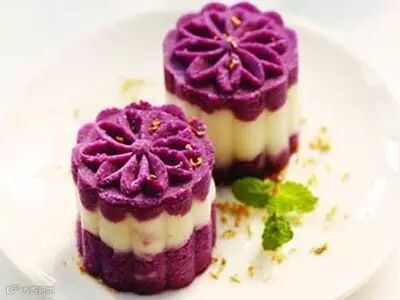 艳丽的紫色和幼白的搭配已经很馋人眼;牛奶的香滑口感与紫薯的粗纤维质的、酥香口感更是绝配。