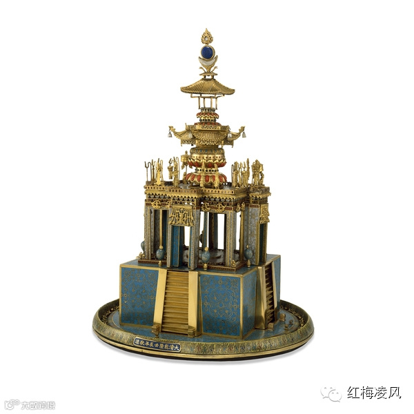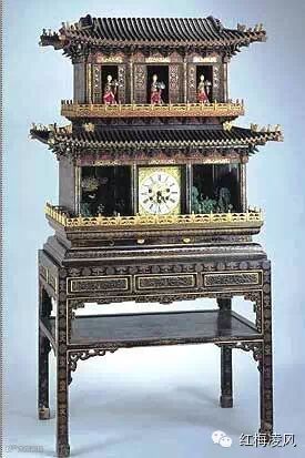 彩漆描金楼阁式自开门群仙祝寿御制钟