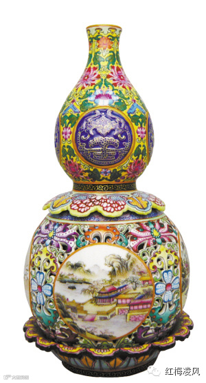 乾隆年制款珐琅彩四开光山水镂空转心葫芦瓶
