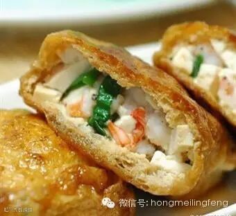 1.把虾仁、老豆腐、葱叶都切碎,加盐、胡椒粉、芝麻油少许拌匀;