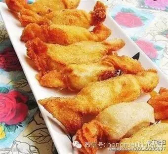 用手将土豆泥捏成粗条,用生菜叶将其包好;