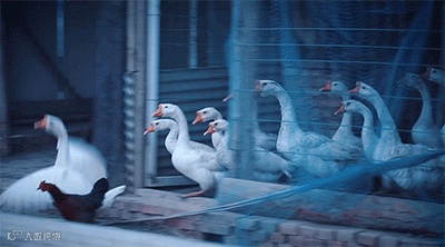 笼子里的白鹅摇晃着身体,