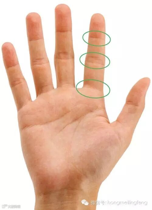 眼睛疲劳:捏右手中指的三个关节。