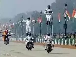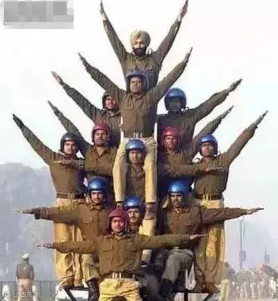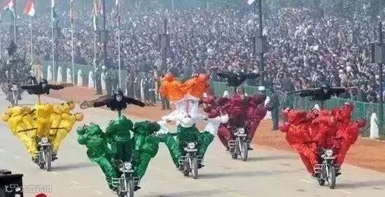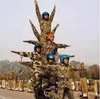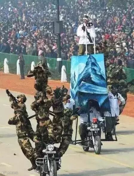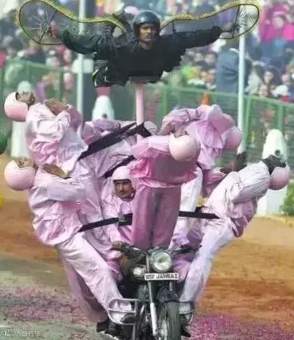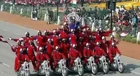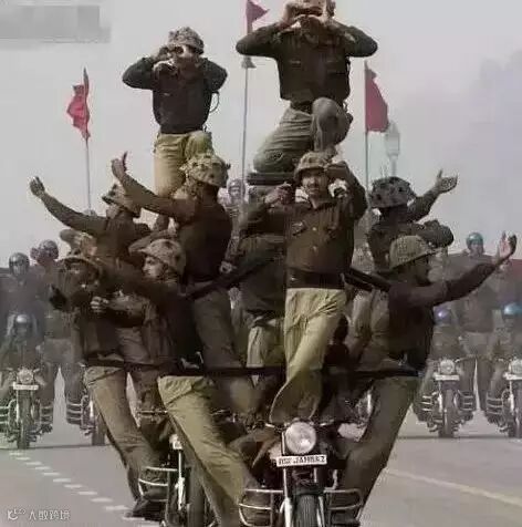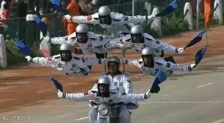 似乎三哥最钟笑摩托车,要是阅兵式没有摩托叠罗汉,那就像菜时没搁盐