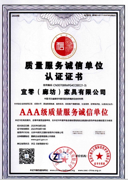 2. 售后保修服务:宜零(廊坊)家具有限公司为所售家具提供完善的保修服务,确保您的家具在使用过程中得到保障。