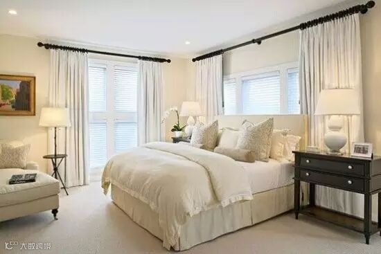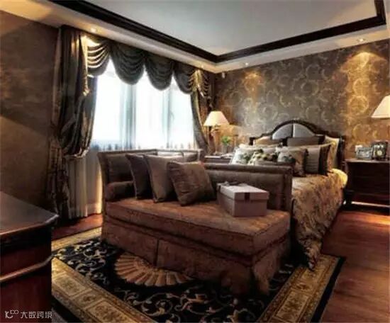 卧室温馨:美式家居的卧室布置较为温馨,作为主人的私密空间,主要以功能性和实用舒适为考虑的重点,一般的卧室不设顶灯,多用温馨柔软的成套布艺来装点,同时在软装和用色上非常统一。现代美式多用非炫目灯光,且尽量做到只见光不见灯的效果。