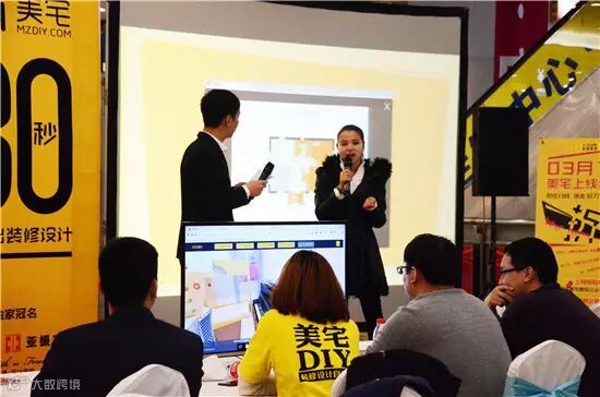 主持人先向到场用户介绍了美宅的业务模式和创新之处。美宅致力于打造以用户自助智能设计为入口的C2M平台,它将AI与VR技术结合,是住宅美化行业目前唯一一家能做到30秒出真3D设计方案的“快”体验产品。