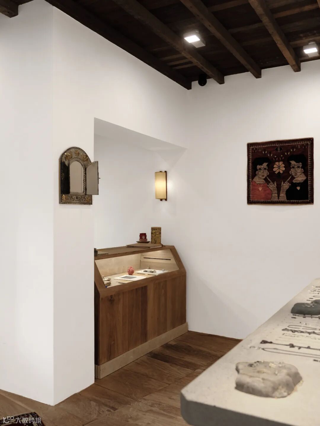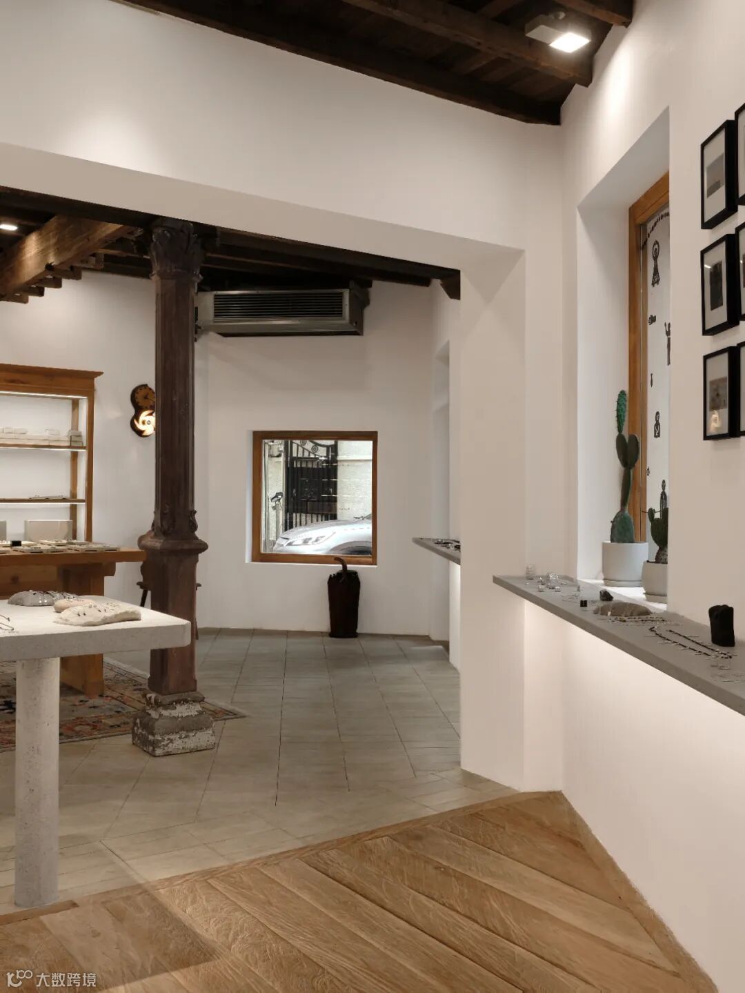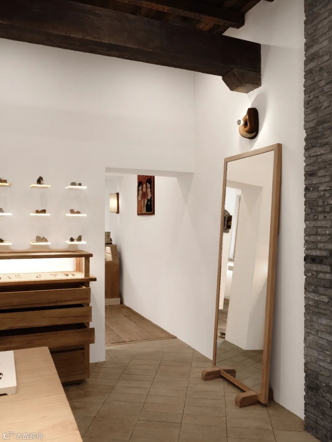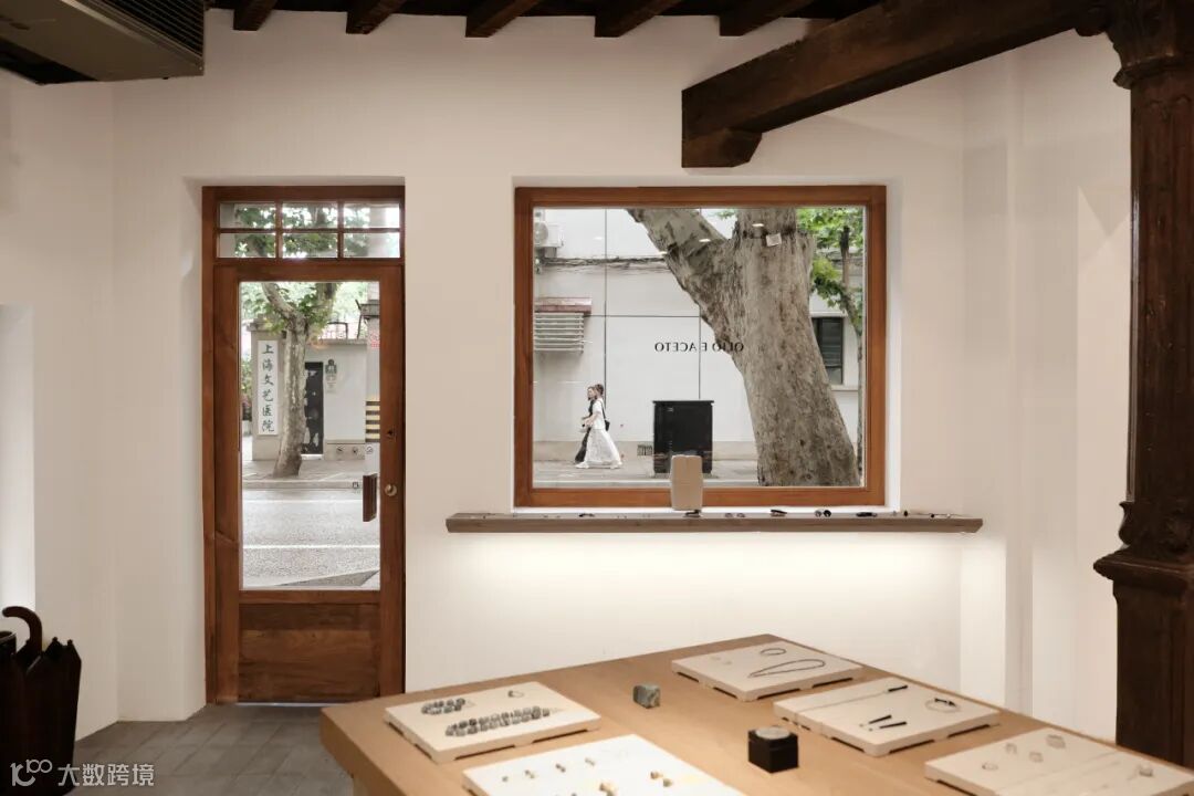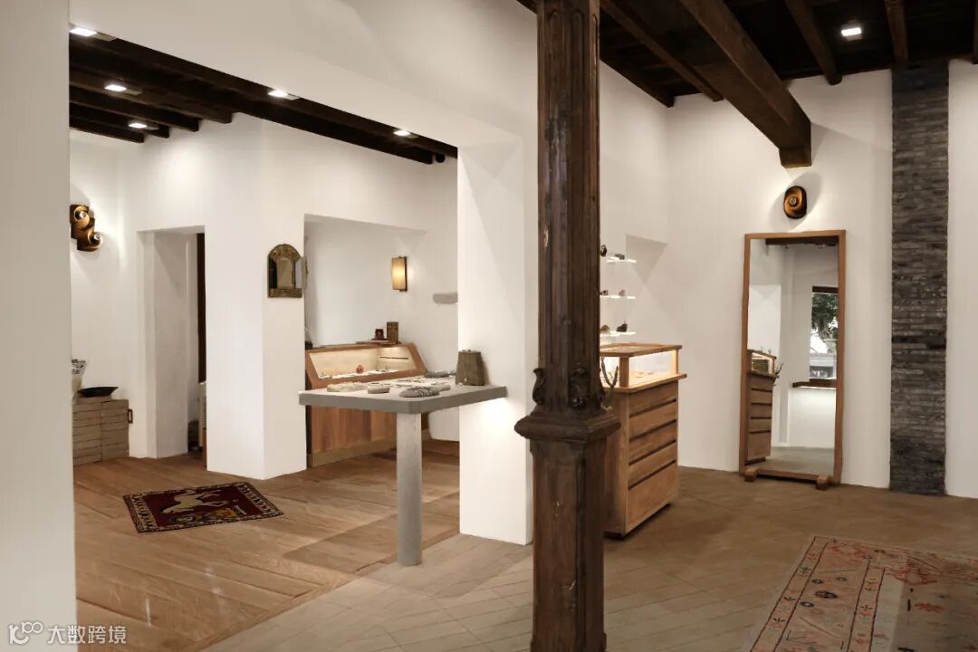 柚木带着纹路的温白与首饰亮银、亚光的色泽交相辉映。木料亲人,木结构的空间让人更温暖舒适,引人探索,去触碰和感受。留下的余温和记忆,也绵延得更悠远长久。似乎总是这样,空间与时间在距离上不断地置换。
