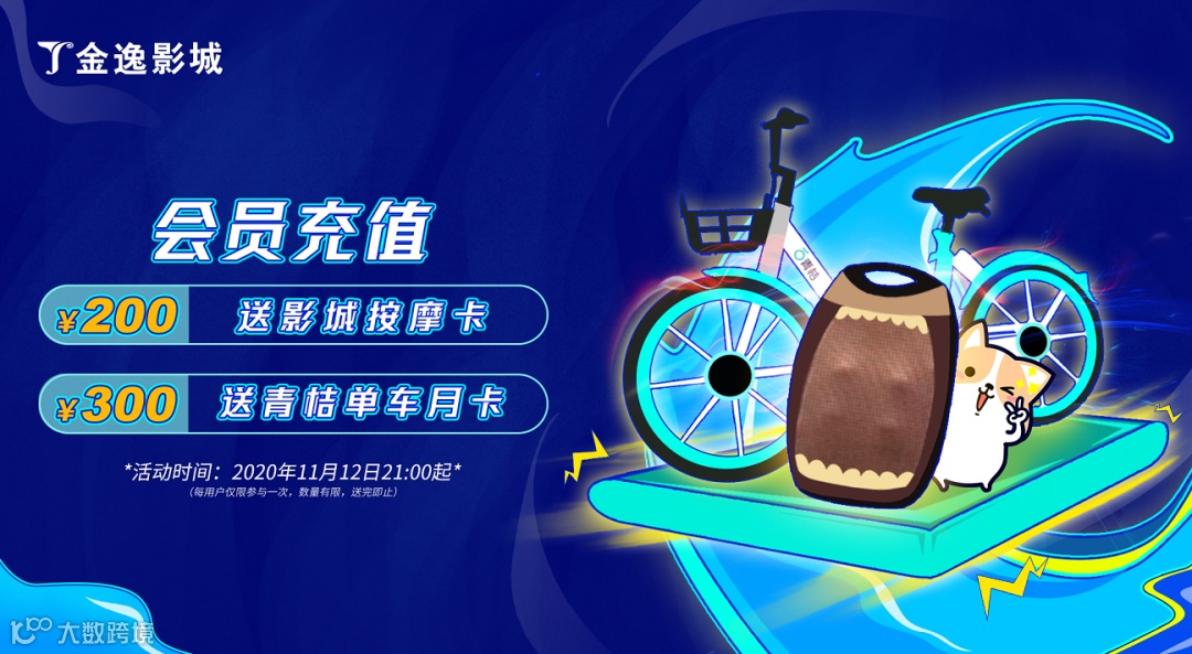 充值300=青桔单车月卡+按摩卡