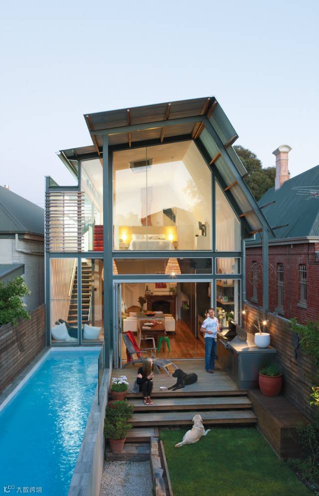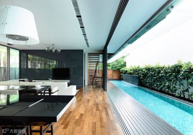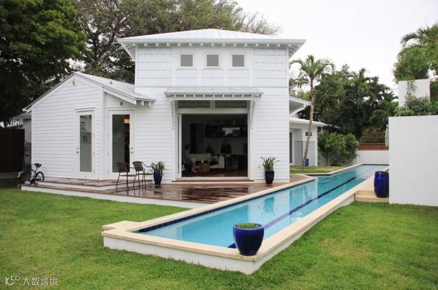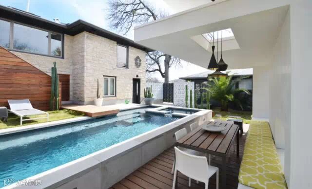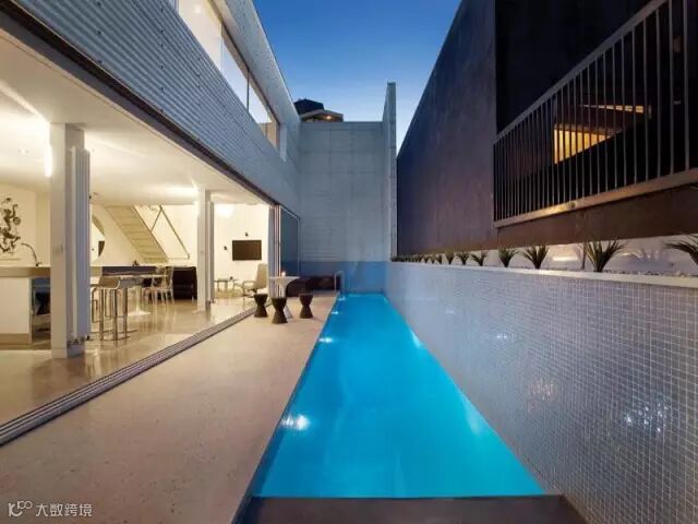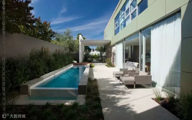 让泳池零距离的贴近着房子,例如依附在窗旁,除了游泳,靠在窗边读书也是特别惬意的事。