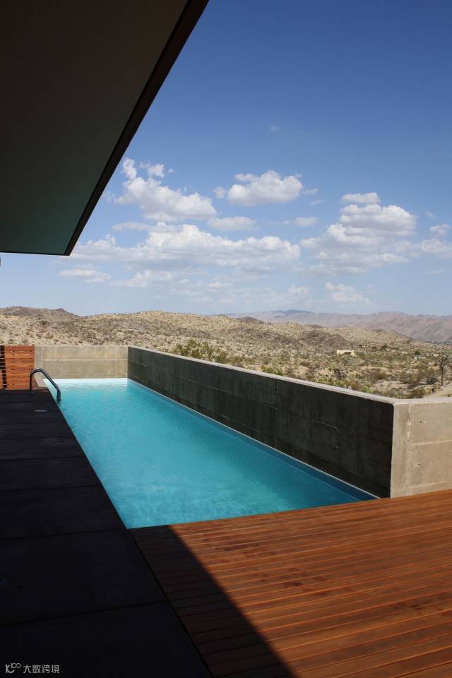 把泳池和房子设置成一个平行结构,赶跑了单调,增添了色彩。