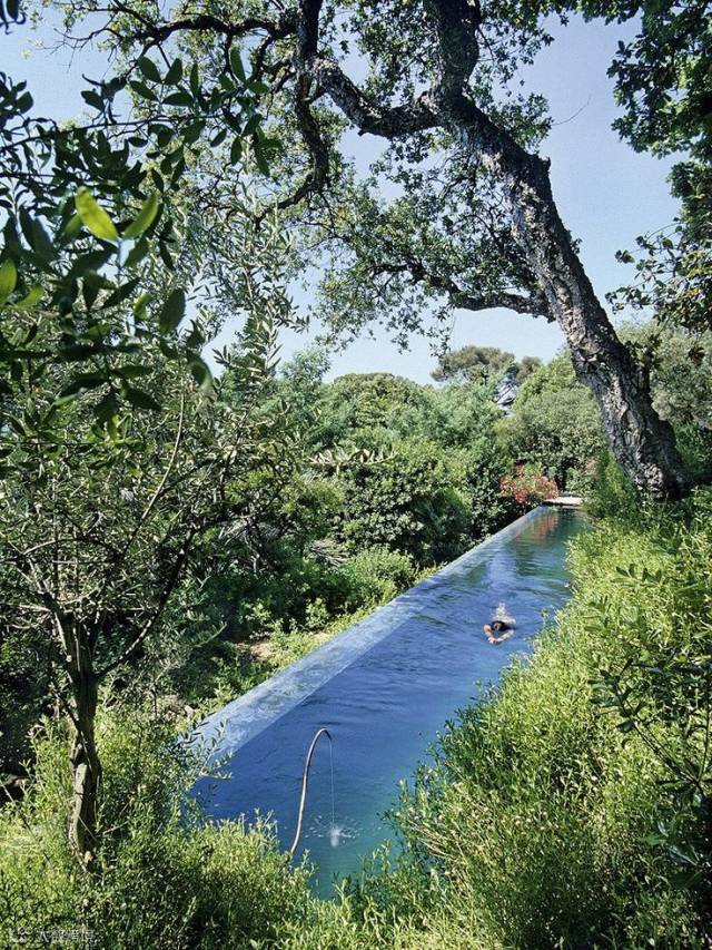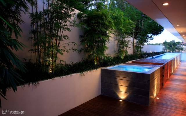 让泳池站在木板上,添一排绿竹,这时它已然不再是个纯粹的泳池,还是一件装饰物。