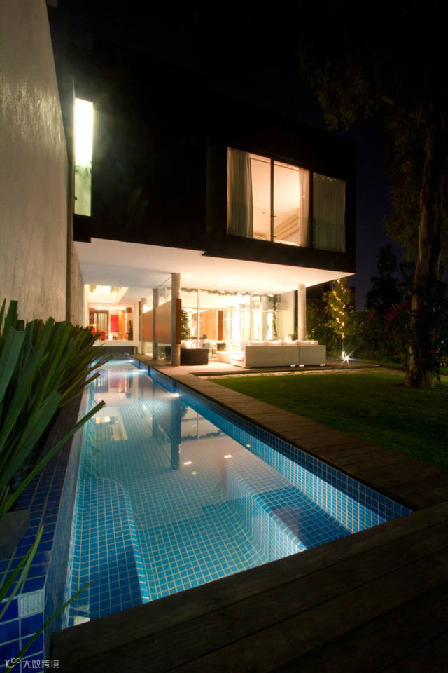 不是所有的泳池都是独立的被装在室内或者放在室外有室内。Doblado Arquitectos设计的游泳池霸道的从外面蔓延到里面,与房子交织在一起,显得亲密无间。